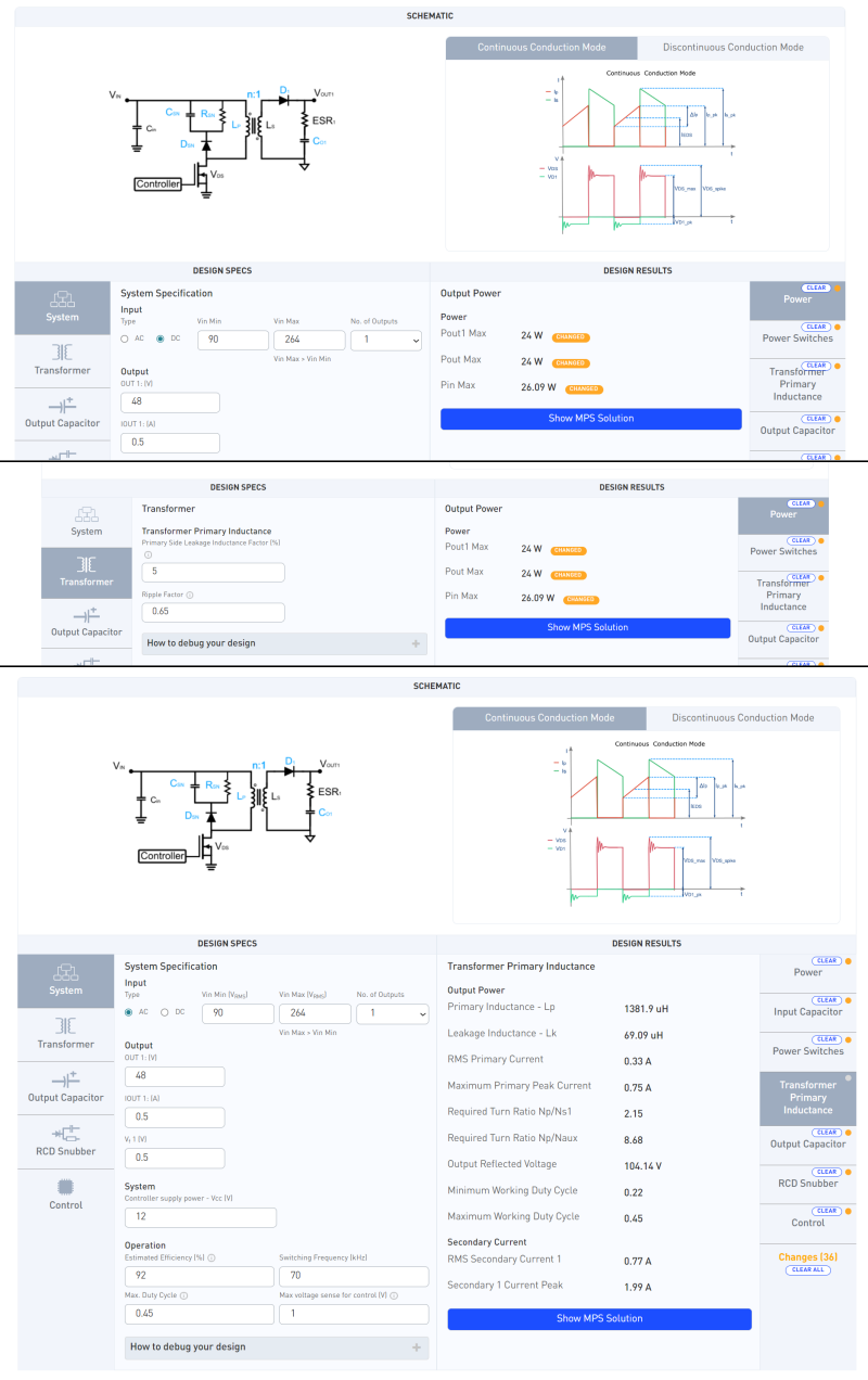 这次用MPS的反激设计工具先做一轮初步设计评估,看看工具给出的参数是否合理。