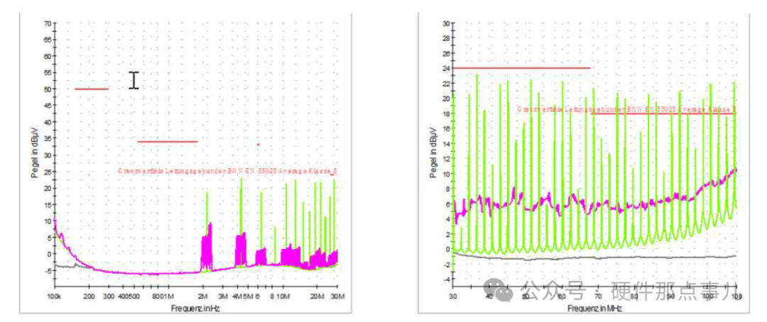 再看频率本身:fsw越低、Duty越大,2f、3f等倍频处的能量也越分散。我算过Duty=0.5 vs Duty=0.8(fsw都固定2MHz),3f处的峰值能差4~6dB。所以选频率时别只看效率,得把倍频躲开车载收音机AM/FM频段(0.5~108MHz)和CISPR25重点考点。