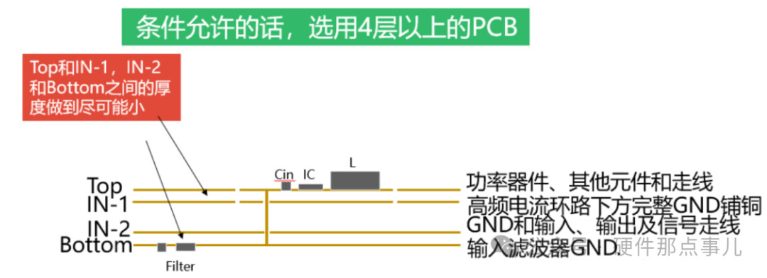 首先多层板肯定比单层板或者2层板EMC性能更好,4层板及以上(Top-Signal-GND-Bottom),对4层板来说,Top和IN-1,IN-2和Bottom之间的厚度为什么要做到尽可能小呢?