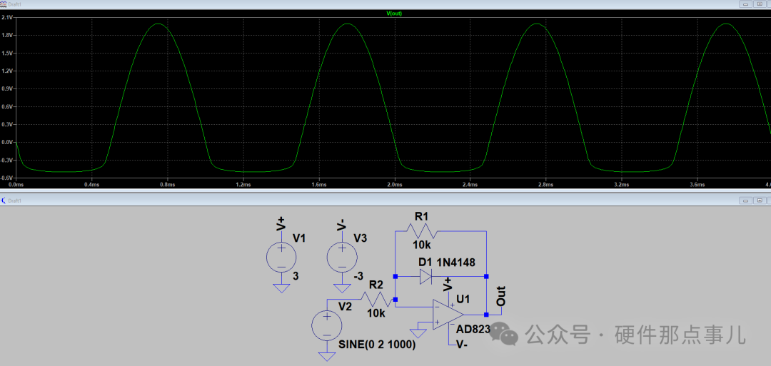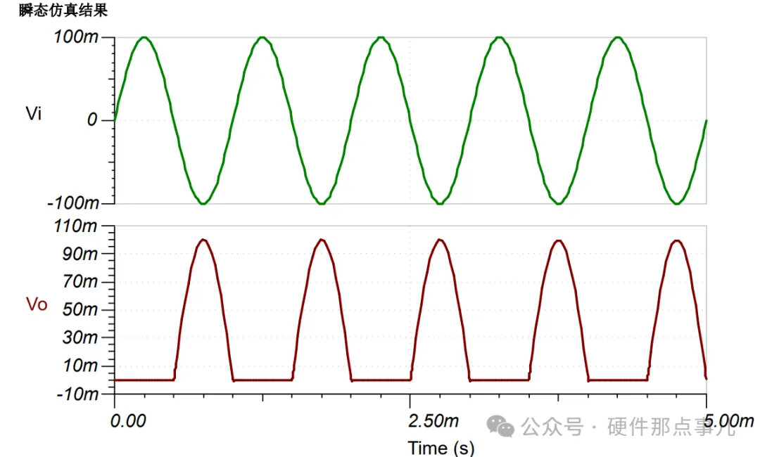 真正的半波整流器,希望在这一半周期内输出为0V。但这个电路输出的是-0.7V。对于精密信号处理来说,这个-0.7V的误差是巨大的。所以,它的学名应该叫带增益的单边限幅器。