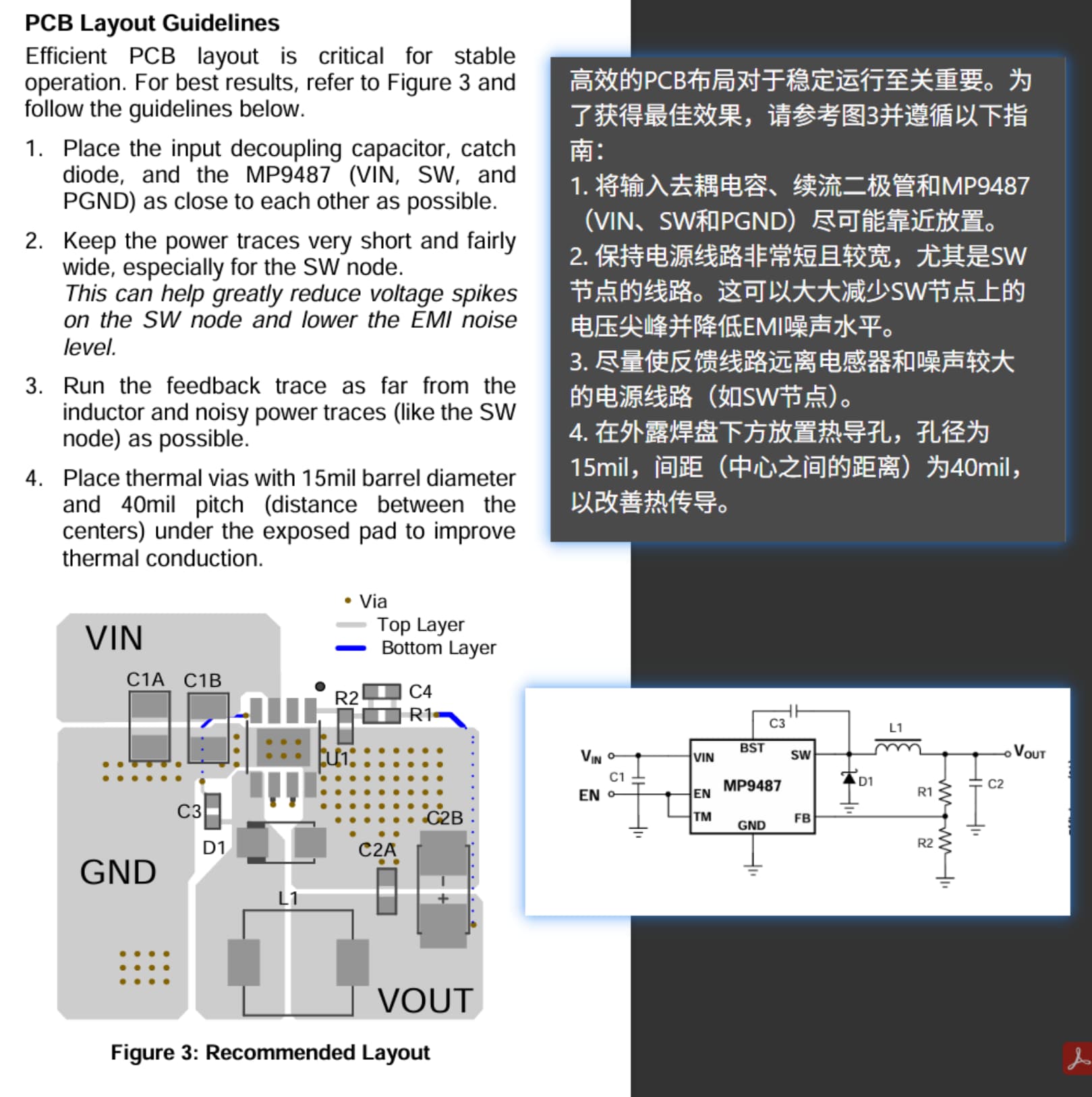 原理图参考了一款竞品做设计,而PCB layout参考了如下的数据手册建议(与竞品PCB layout有差异)。