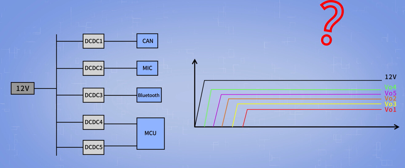 如图1所示,是一个常见的系统,12V经过降压处理后分别需要给MCU、CAN、MIC、蓝牙等设备供电,这些设备所需要的电压和时序分别不同,那么如何简单方便地实现不同电压之间的时序配置呢?