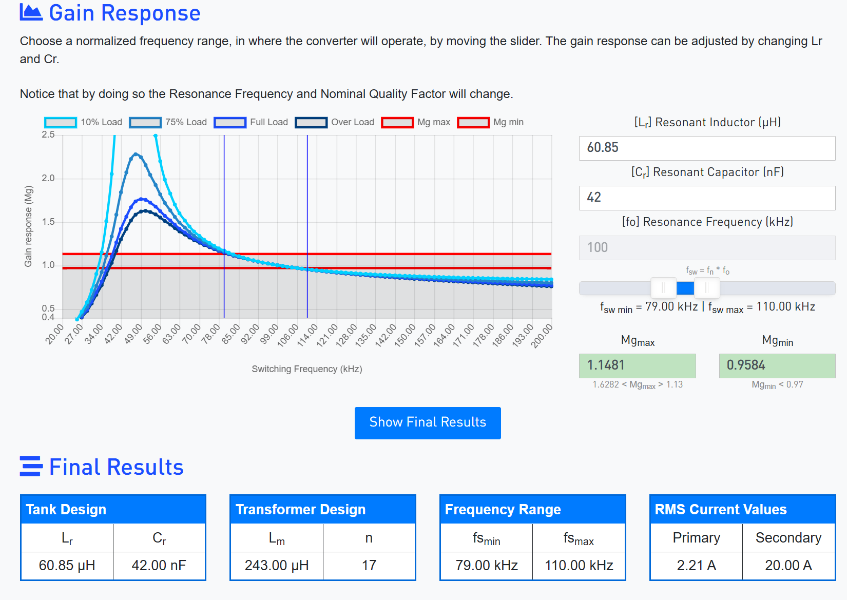 当然,工具不是万能的,过载、ZVS边界、副边电流应力这些还是要自己再复核一下。但对于快速拿到一组可用的谐振参数,这个工具真的很香。