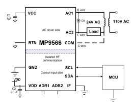 图2: 固态继电器(MP9566)应用框图和原理示意图