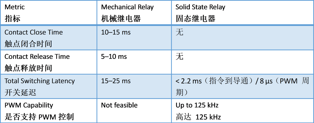 快速的开关速度以及基于 PWM 的功率控制,能产生更平滑的温度曲线,减少设备启停应力,并可将温度精度从 ±1°C 提高到 ±0.1°C。这对需要快速控制信号的逆变器驱动热泵和空调尤其有价值。