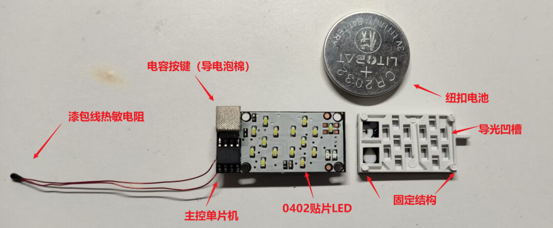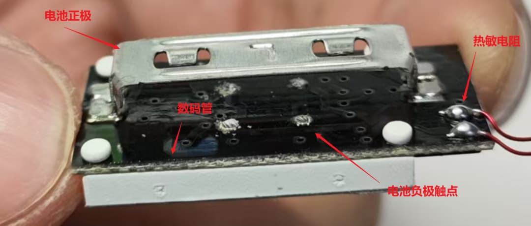 所以说这个电路板设计还是很巧妙的,他应该是从ADC检测温度或者是从电容按键检测的两个管脚中,有一个复用为了输出,以控制LED。总体应该是5个管脚的查理复用法。设计的真是有意思!